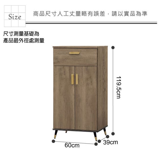 尺寸:(寬)60x(深)39(高)119.5公分 ◆材質: 材質:防蛀木心板+防鏽黑漆腳座+五金滑軌結構+防夾手緩衝門片五金 噴漆:防潮耐磨噴漆處理