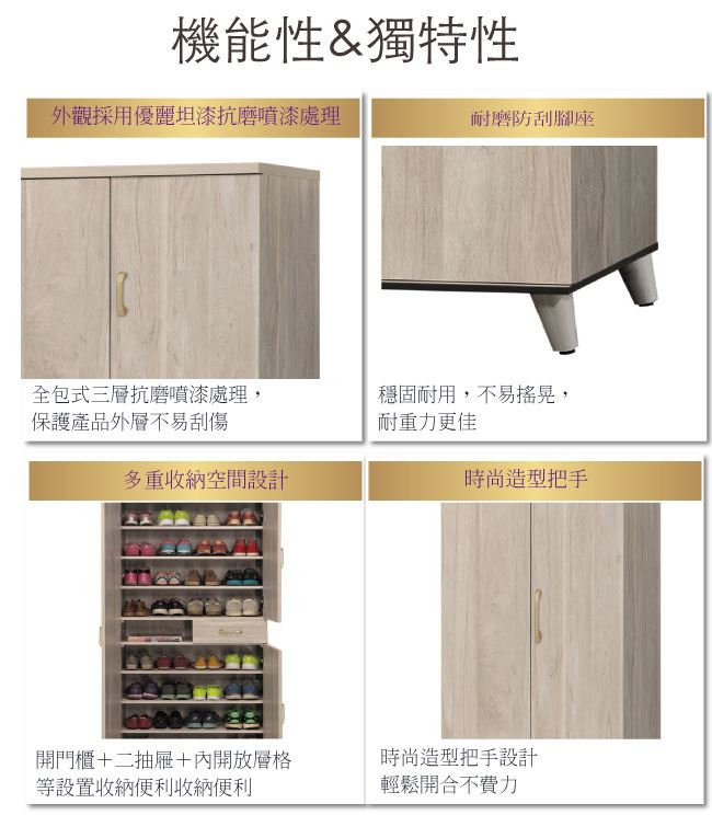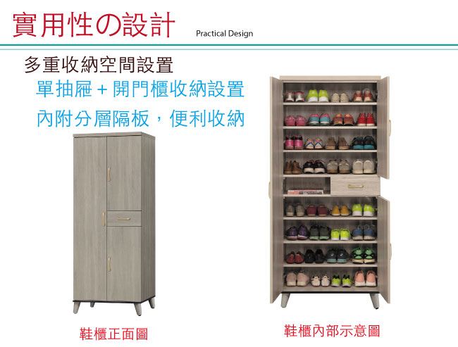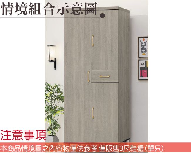 - ◆產品名稱:【綠家居】梅納2.6尺三門單抽高鞋櫃(二色可選)