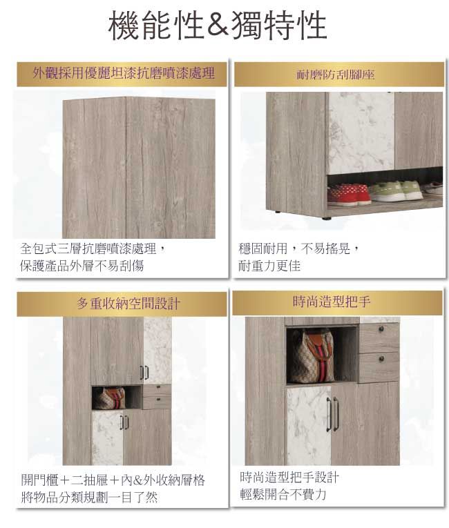 - ◆產品名稱:【綠家居】穆伊2.7尺四門二抽高鞋櫃/玄關櫃