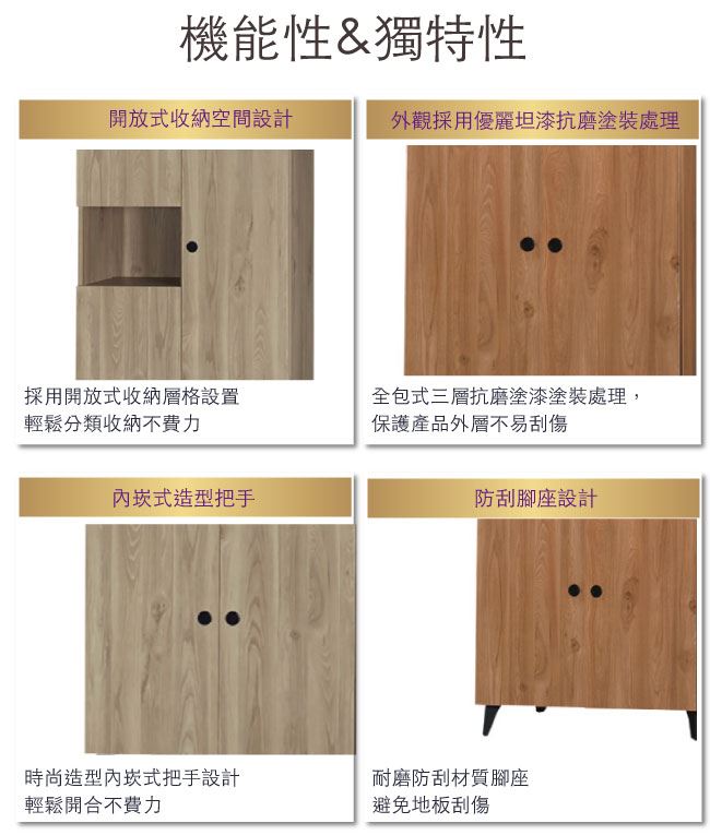- 開門櫃+三抽屜+內開放式收納