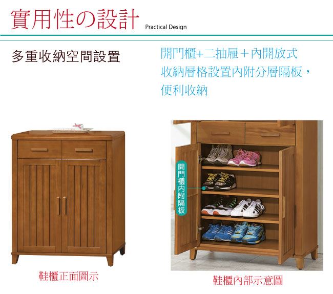 【綠家居】梅利實木2.8尺二門雙抽鞋櫃