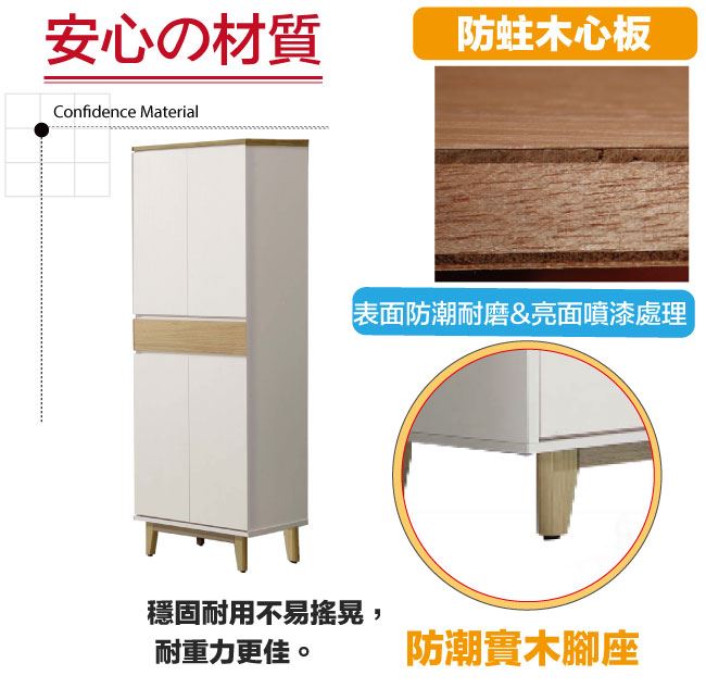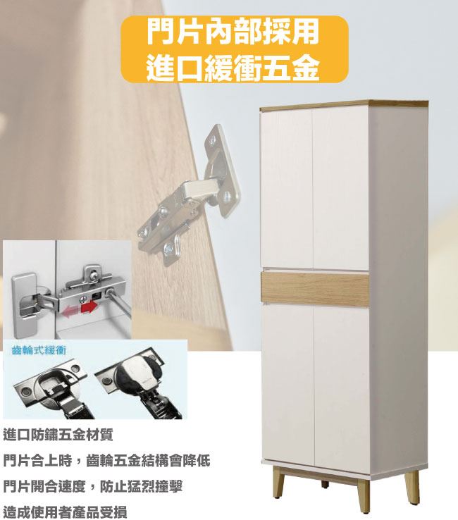 材質 | ◆產品名稱:【綠家居】奈吉亞雙色2尺四門單抽高玄關鞋櫃 尺寸:(寬)60x(深)40(高)180/公分 ◆材質: 材質:防蛀木心板+防潮耐磨腳座+防夾手緩衝門片五金+五金滑軌結構 噴漆:防潮耐磨&亮面噴漆處理