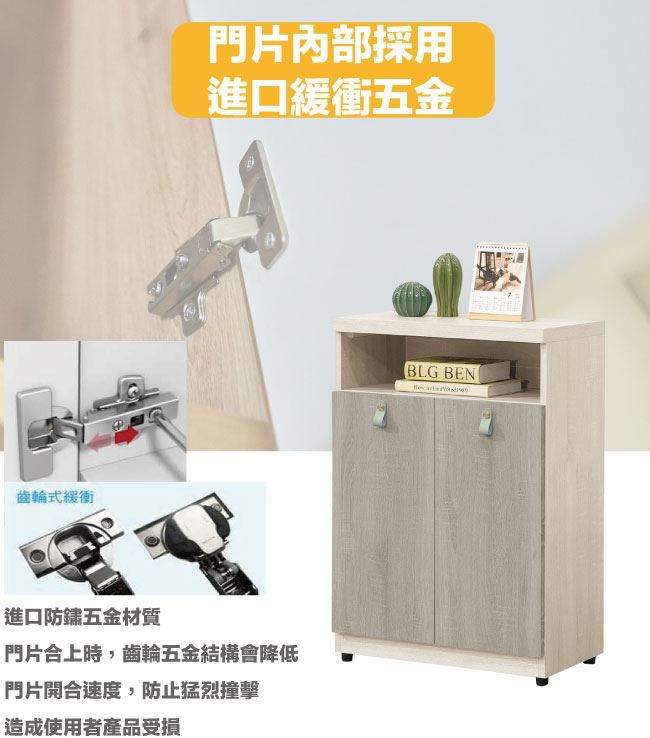 材質 | ◆產品名稱:【綠家居】波絲2尺二門鞋櫃 尺寸:(寬)60x(深)32(高)86公分 ◆材質: 材質:防蛀木心板+防潮耐磨腳座+防夾手緩衝門片五金 噴漆:防潮耐磨噴漆處理
