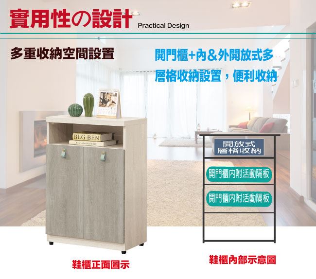 【綠家居】波絲2尺二門鞋櫃