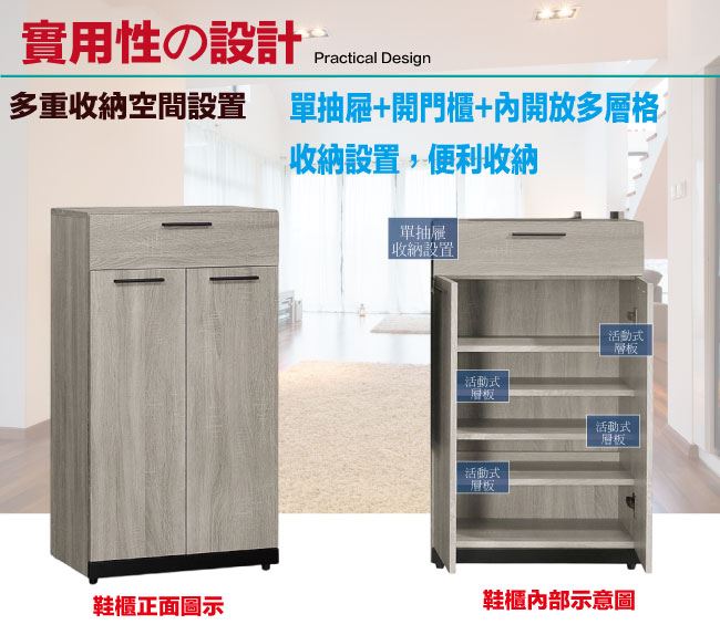 【綠家居】卡瑞2尺二門單抽鞋櫃