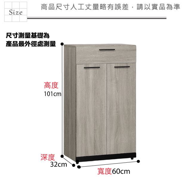 材質 | ◆產品名稱:【綠家居】卡瑞2尺二門單抽鞋櫃 尺寸:(寬)60x(深)32(高)101/公分 ◆材質: 材質:防蛀木心板+防潮耐磨腳座+防夾手緩衝門片五金+五金滑軌結構 噴漆:防潮耐磨噴漆處理
