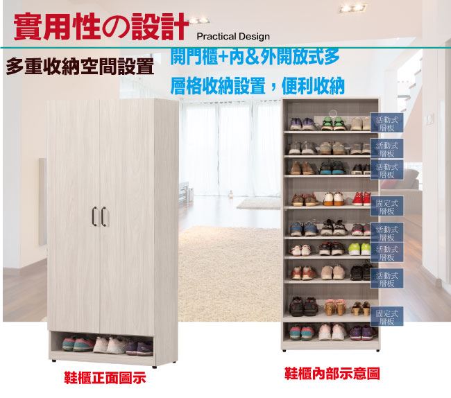 【綠家居】布金2.5尺二門高鞋櫃