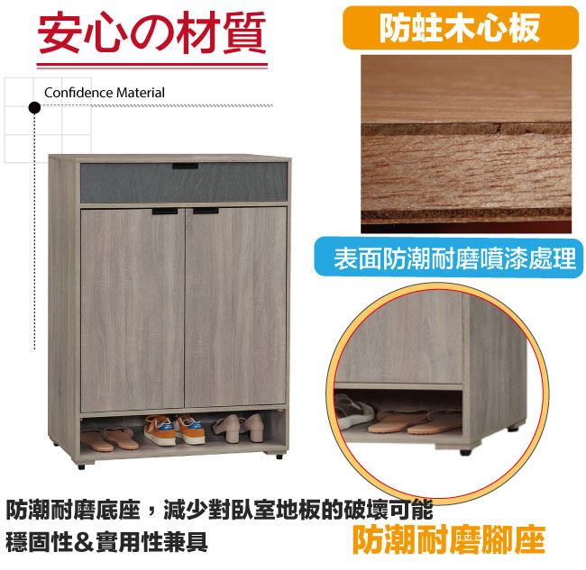 商品 介紹 | 【綠家居】卡克斯2.7尺二門單抽玄關鞋櫃 木紋雙色系+現代簡約風格+安心材質製造,使用放心+搭配居家更便利,整體採用防蛀木心板+防潮耐磨腳座+防夾手緩衝門片五金+五金滑軌結構等材質搭配外層採用優莉坦耐磨全包式噴漆處理 ,採用開門櫃+單抽屜+內&外開放層格等收納空間設計,全由專人配送到家,專業安心服務,替你省下更多時間! 【商品特色】 木紋雙色系+現代簡約風格+安心材質製造,使用放心+搭配居家更便利 防蛀木心板+防潮耐磨腳座+防夾手緩衝門片五金+五金滑軌結構等材質 採用開門櫃+單抽屜+內&外開放層格等收納空間設計 此商品不需要DIY組立,此商品為組立後之成品 品質保證、專業設計、貼心服務 全由專人配送到家,專業安心服務,替您省下更多時間 |