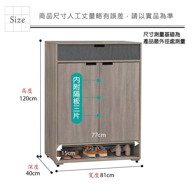 材質 | ◆產品名稱:【綠家居】卡克斯2.7尺二門單抽玄關鞋櫃 尺寸:(寬)81x(深)40(高)120/公分 ◆材質: 材質:防蛀木心板+防潮耐磨腳座+五金滑軌結構+防夾手緩衝門片五金 噴漆:防潮耐磨噴漆處理