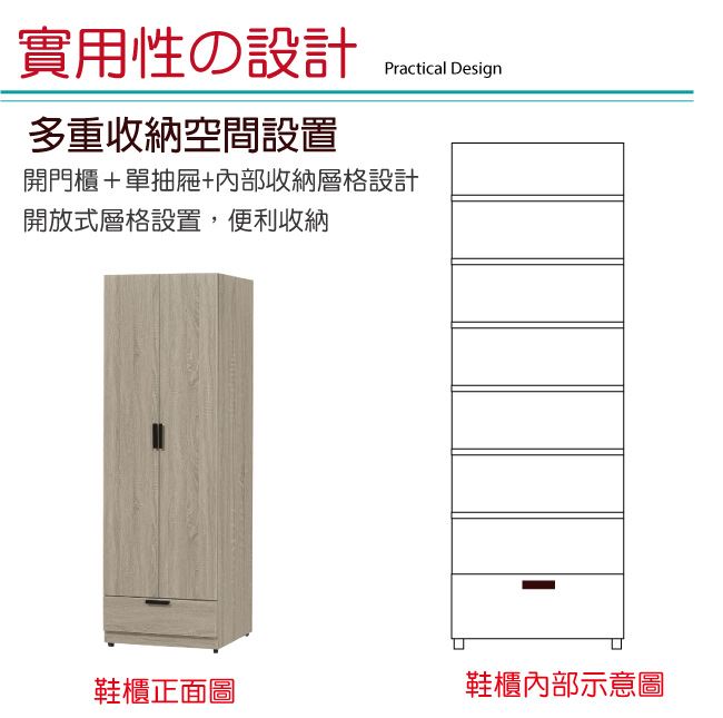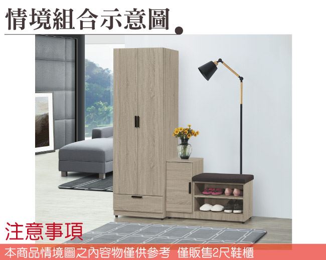 【綠家居】泰雷2尺二門單抽高玄關鞋櫃