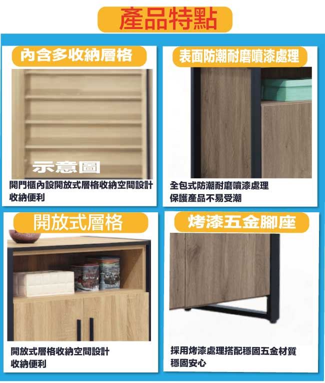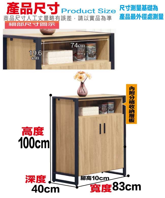 材質 | ◆產品名稱:【綠家居】特爾2.8尺二門鞋櫃(二色可選) 尺寸:(寬)83x(深)40x(高)100/公分 ◆材質: 材質:防蛀木心板+烤漆金屬邊框腳座 表面防潮耐磨噴漆處理 |