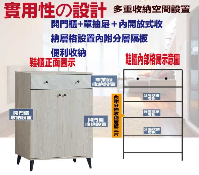 【綠家居】蘿珊雙色2.6尺二門二抽鞋櫃