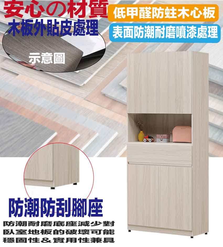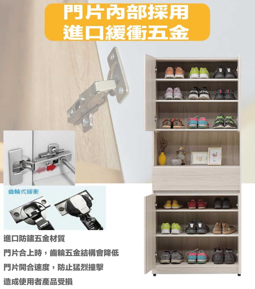 材質:防蛀木心板+防潮耐磨底座+防夾手緩衝門片五金