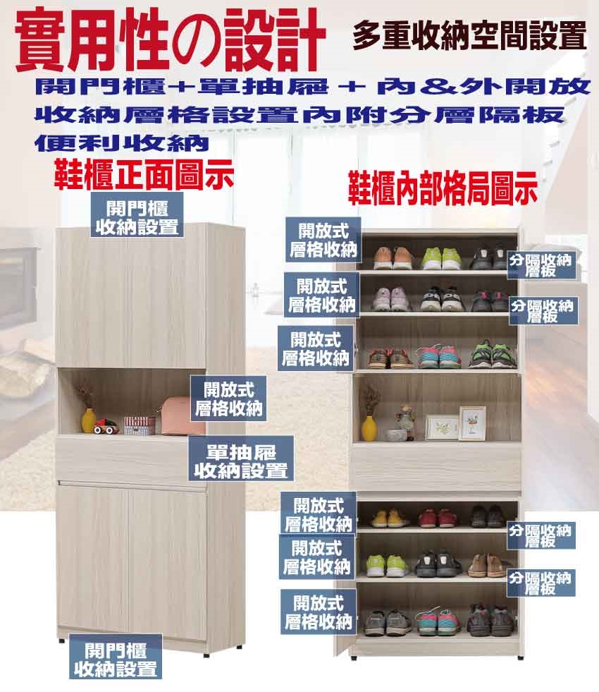 【綠家居】艾蘿2.7尺四門單抽高玄關鞋櫃