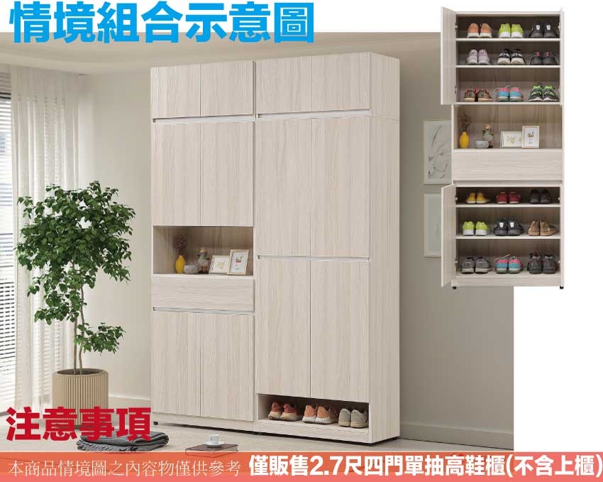 - ◆產品名稱:【綠家居】艾蘿2.7尺四門單抽高玄關鞋櫃