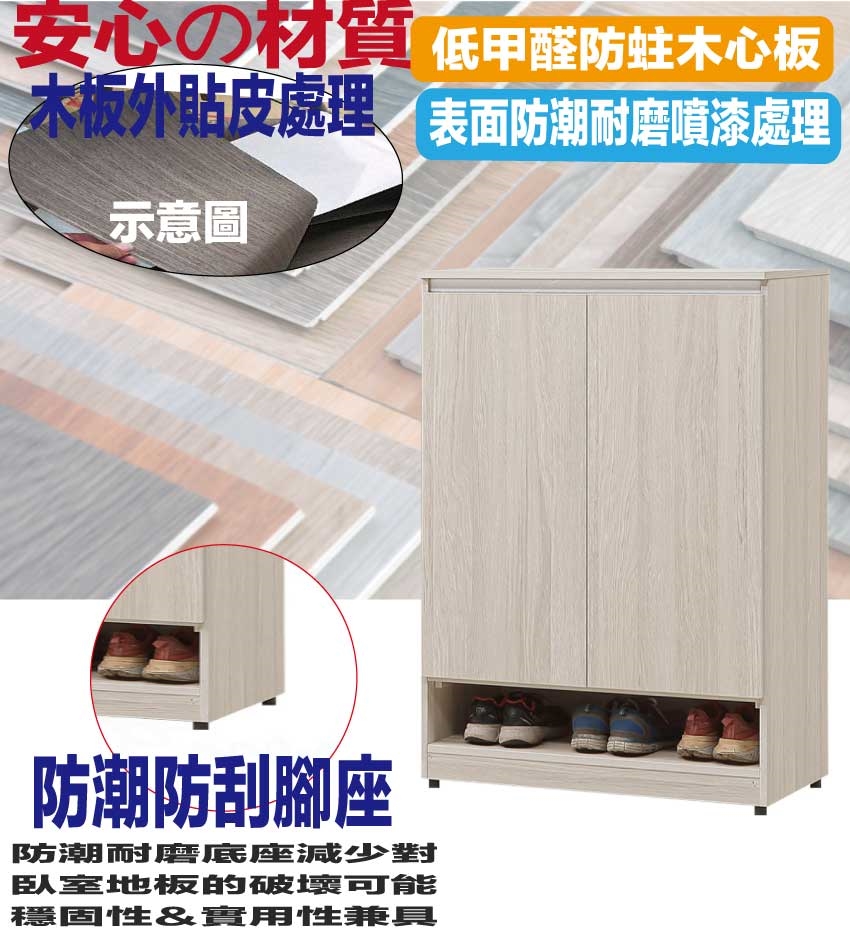 ★偏遠地區需額外加收運費,下標請先問與答詢問★ ★下訂前注意 由於商品流動較快,下訂前請先詢問是否有貨在下訂喔~★ 【綠家居】艾蘿2.7尺二門鞋櫃 淺橡木紋色系+安心材質製造,使用放心+搭配居家更便利,採用防蛀木心板+防潮耐磨底座+防夾手緩衝門片五金等安心材質製造 ,外層採用防潮耐磨噴漆處理搭配採用開門櫃+內&外開放層格等收納空間設計,全由專人配送到家,專業安心服務,替你省下更多時間!