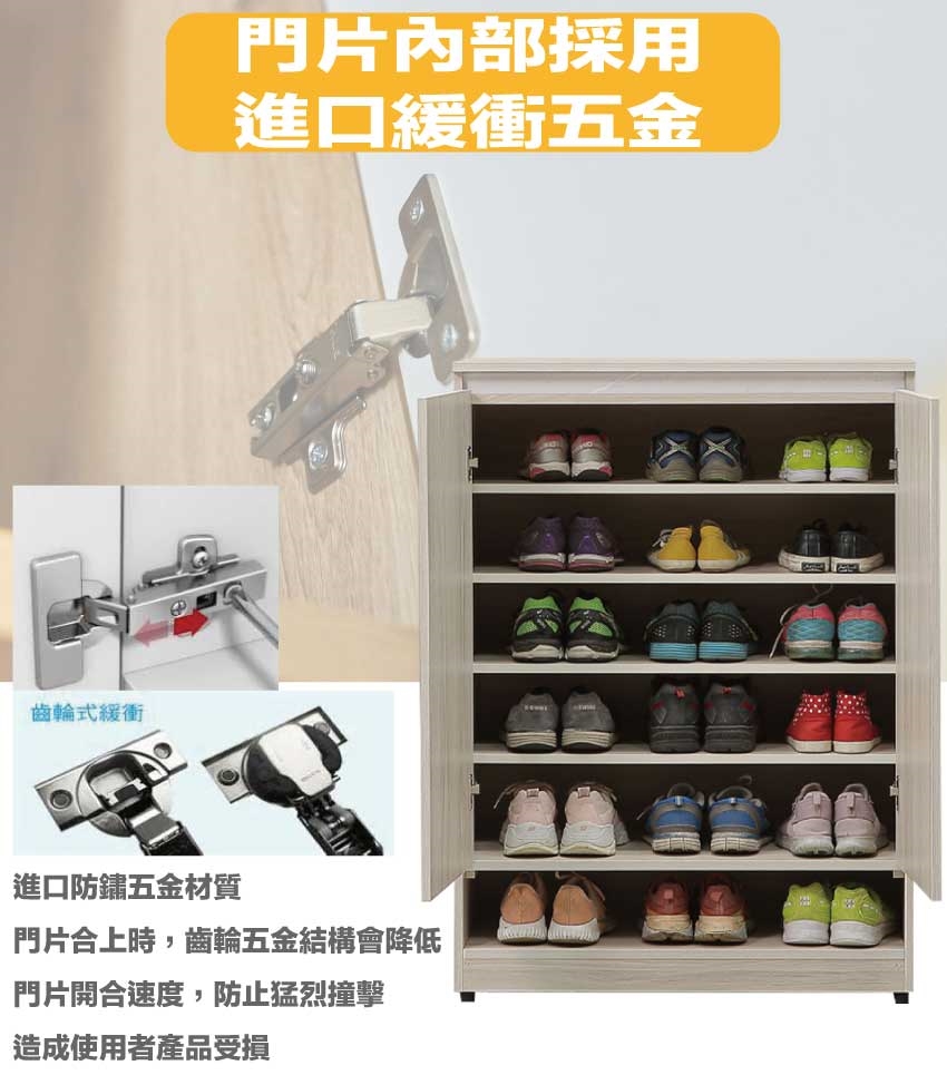 材質:防蛀木心板+防潮耐磨底座+防夾手緩衝門片五金