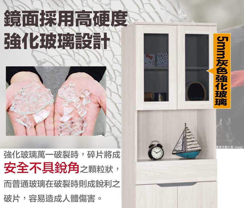採用防蛀木心板+防潮耐磨底座+五金滑軌結構+防夾手緩衝門片五金+5mm強化灰玻璃等安心材質製造