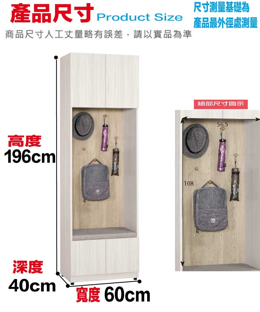 尺寸:(寬)60x(深)40x(高)190/公分