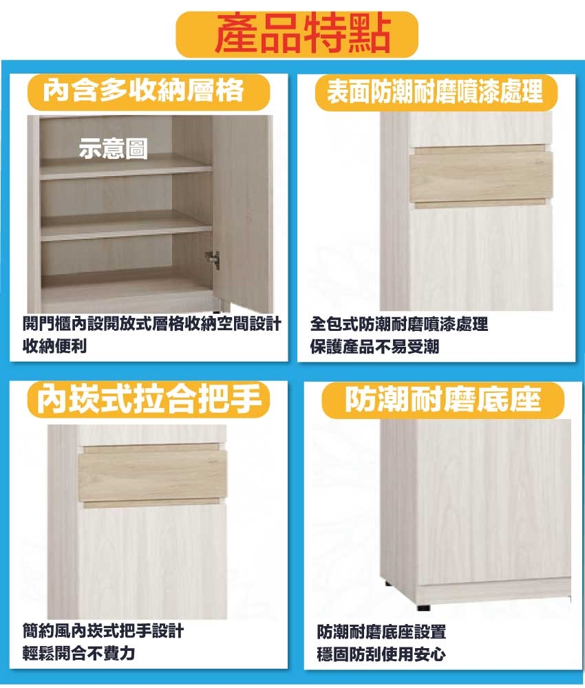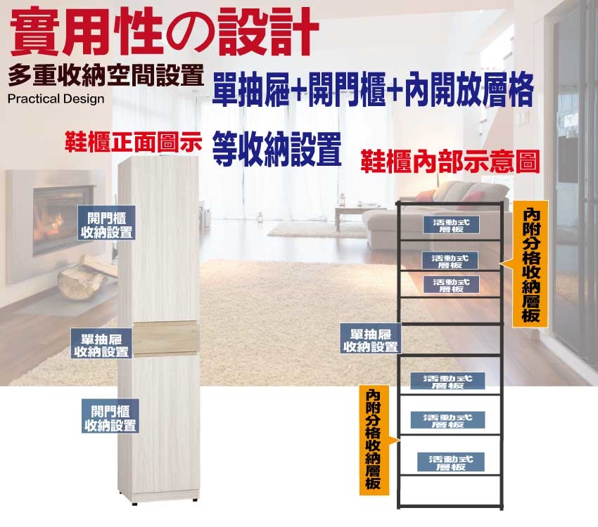 材質:防蛀木心板+五金滑軌結構+防潮耐磨底座+防夾手緩衝門片五金