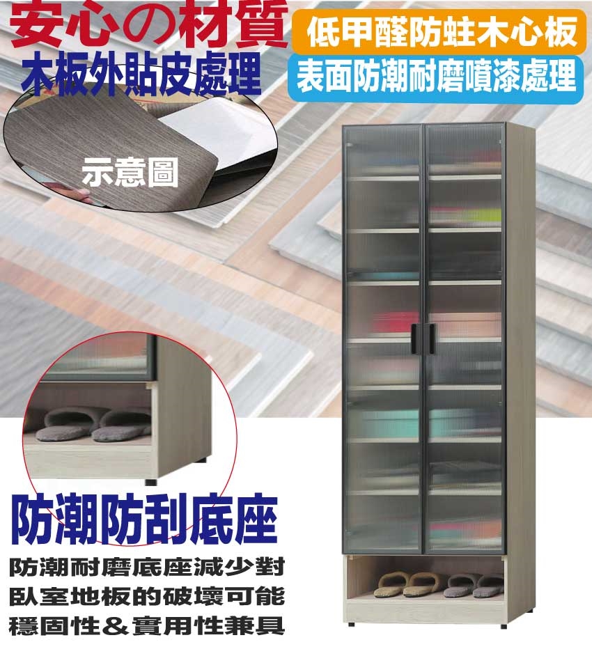 材質:防蛀木心板+防夾手緩衝門片五金+防潮耐磨底座+鋁製邊框+長虹PC壓克力面板