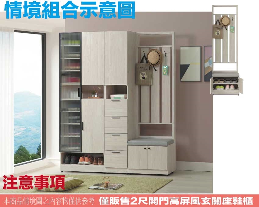 - ◆產品名稱:【綠家居】夏斯2尺雙門高屏風玄關座鞋櫃(便利穿鞋座板)