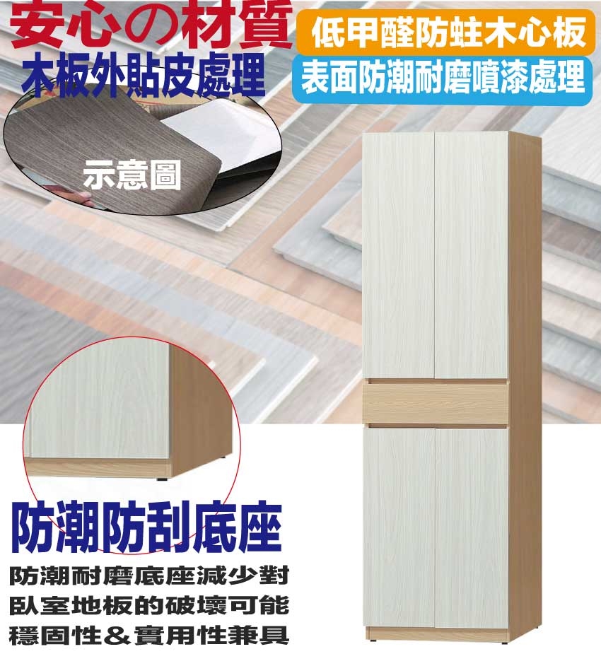 採用防蛀木心板+防夾手緩衝門片五金+防潮耐磨底座+五金滑軌結構等安心材質製造