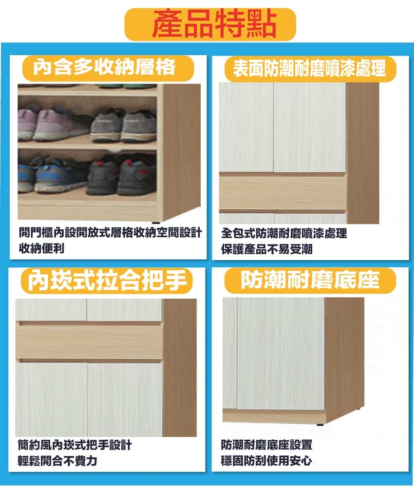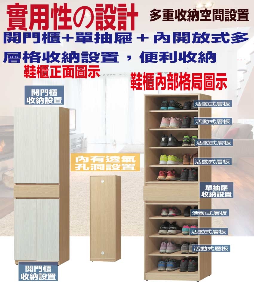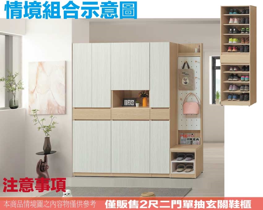 - ◆產品名稱:【綠家居】奧格雙色2尺四門單抽高玄關鞋櫃