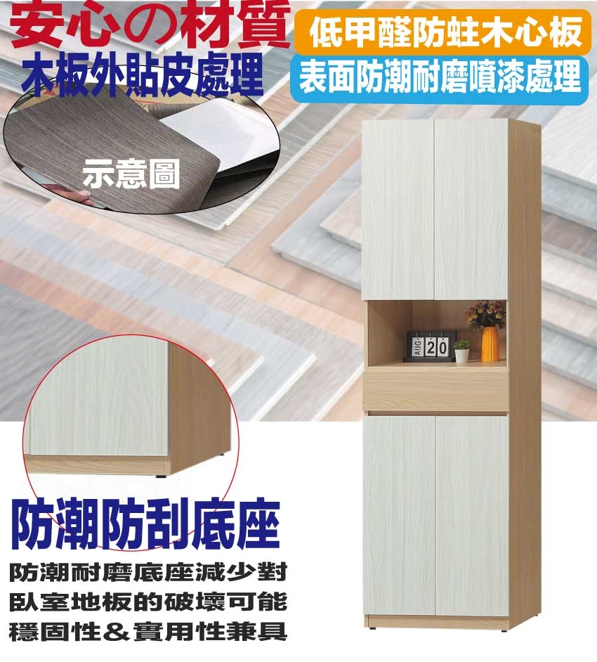 採用防蛀木心板+防夾手緩衝門片五金+防潮耐磨底座+五金滑軌結構等安心材質製造