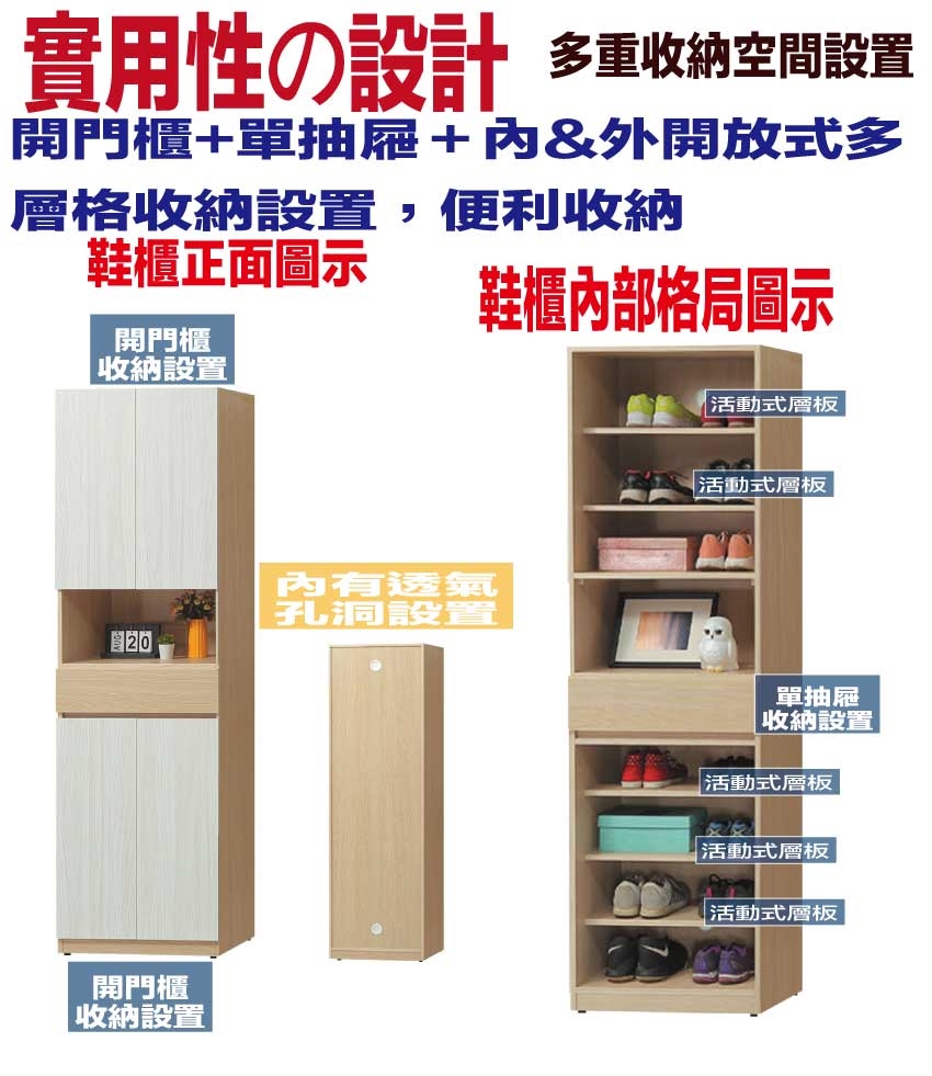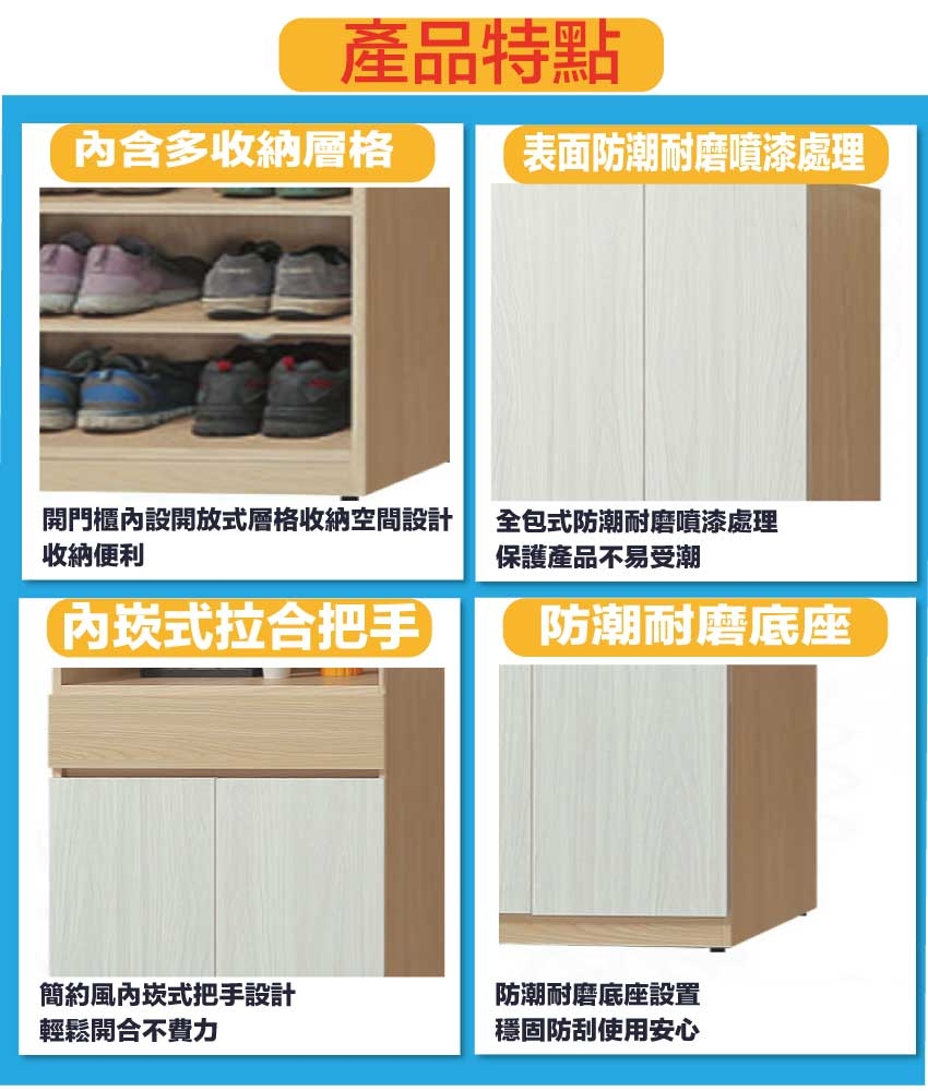 - ◆產品名稱:【綠家居】奧格雙色2尺四門單抽中空高玄關鞋櫃