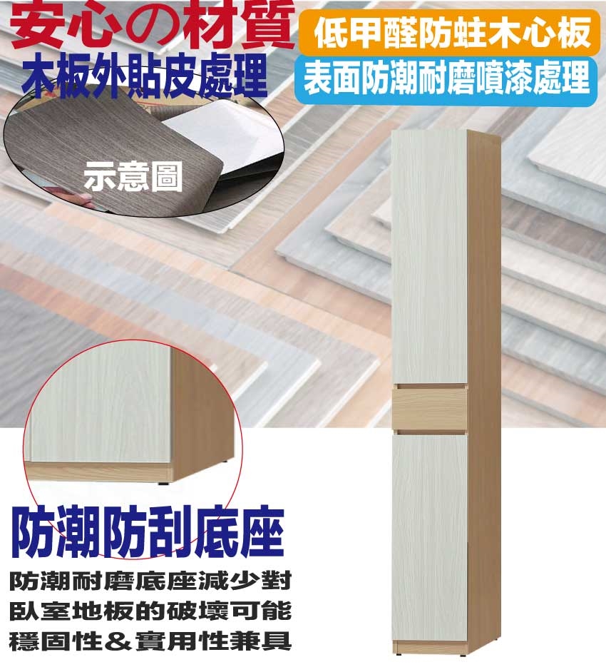 採用防蛀木心板+防夾手緩衝門片五金+防潮耐磨底座+五金滑軌結構等安心材質製造