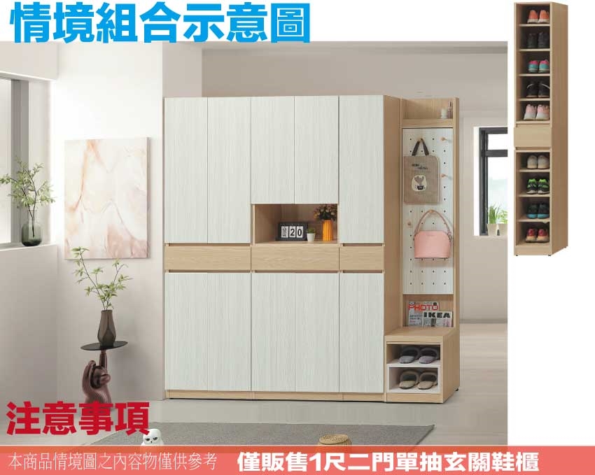 - ◆產品名稱:【綠家居】奧格雙色1尺二門單抽高玄關鞋櫃