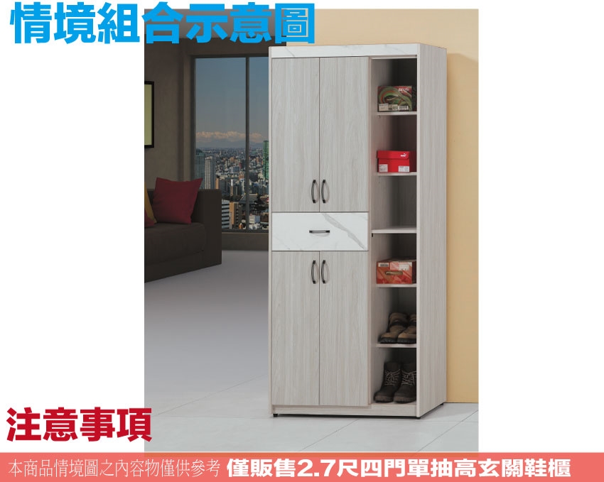 - ◆產品名稱:【綠家居】曼奇2.7尺四門單抽半開放高玄關櫃