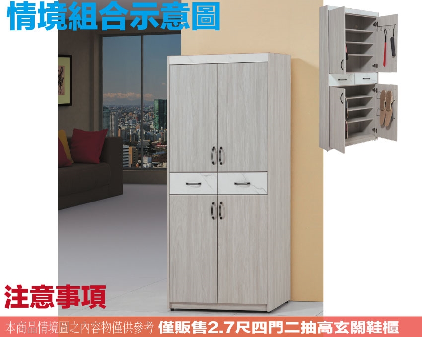- ◆產品名稱:【綠家居】曼奇2.7尺四門二抽高玄關櫃