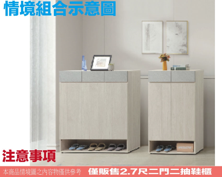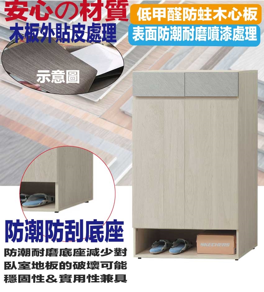 ★偏遠地區需額外加收運費,下標請先問與答詢問★ ★下訂前注意 由於商品流動較快,下訂前請先詢問是否有貨在下訂喔~★ 【綠家居】莫森2.7尺二門二抽鞋櫃 現代雙色系+安心材質製造,使用放心+搭配居家更便利,採用防蛀木心板+防夾手緩衝五金+防潮耐磨底座+五金滑軌結構等安心材質製造 ,外層採用防潮耐磨噴漆處理搭配採用開門櫃+二抽屜+內&外開放層格等收納空間設計,全由專人配送到家,專業安心服務,替你省下更多時間!