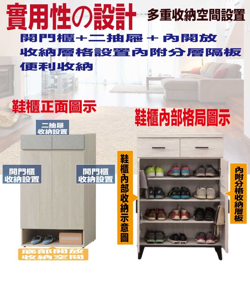 【綠家居】莫森2.7尺二門二抽鞋櫃