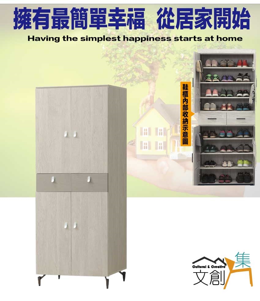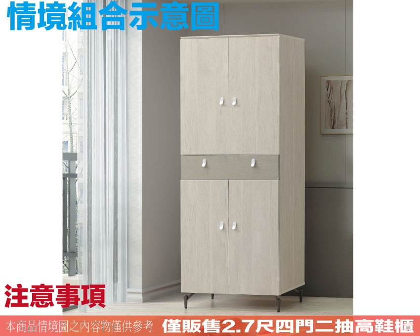 - ◆產品名稱:【綠家居】蒂斯2.7尺四門二抽高玄關鞋櫃