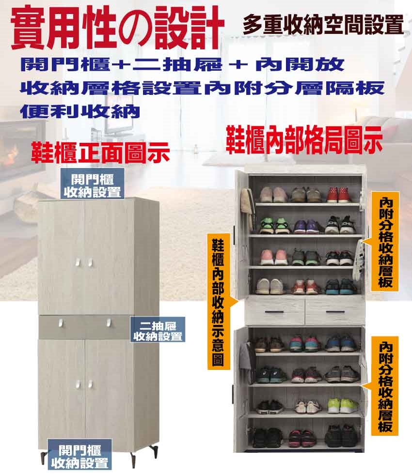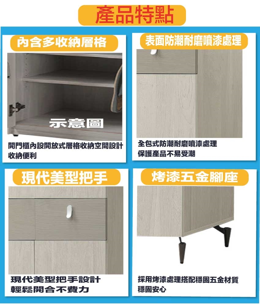 ★偏遠地區需額外加收運費,下標請先問與答詢問★ ★下訂前注意 由於商品流動較快,下訂前請先詢問是否有貨在下訂喔~★ 【綠家居】蒂斯2.7尺四門二抽高玄關鞋櫃 現代雙色系+安心材質製造,使用放心+搭配居家更便利,採用防蛀木心板+防夾手緩衝五金+烤漆五金腳座+五金滑軌結構等安心材質製造 ,外層採用防潮耐磨噴漆處理搭配採用開門櫃+二抽屜+內開放層格等收納空間設計,全由專人配送到家,專業安心服務,替你省下更多時間!