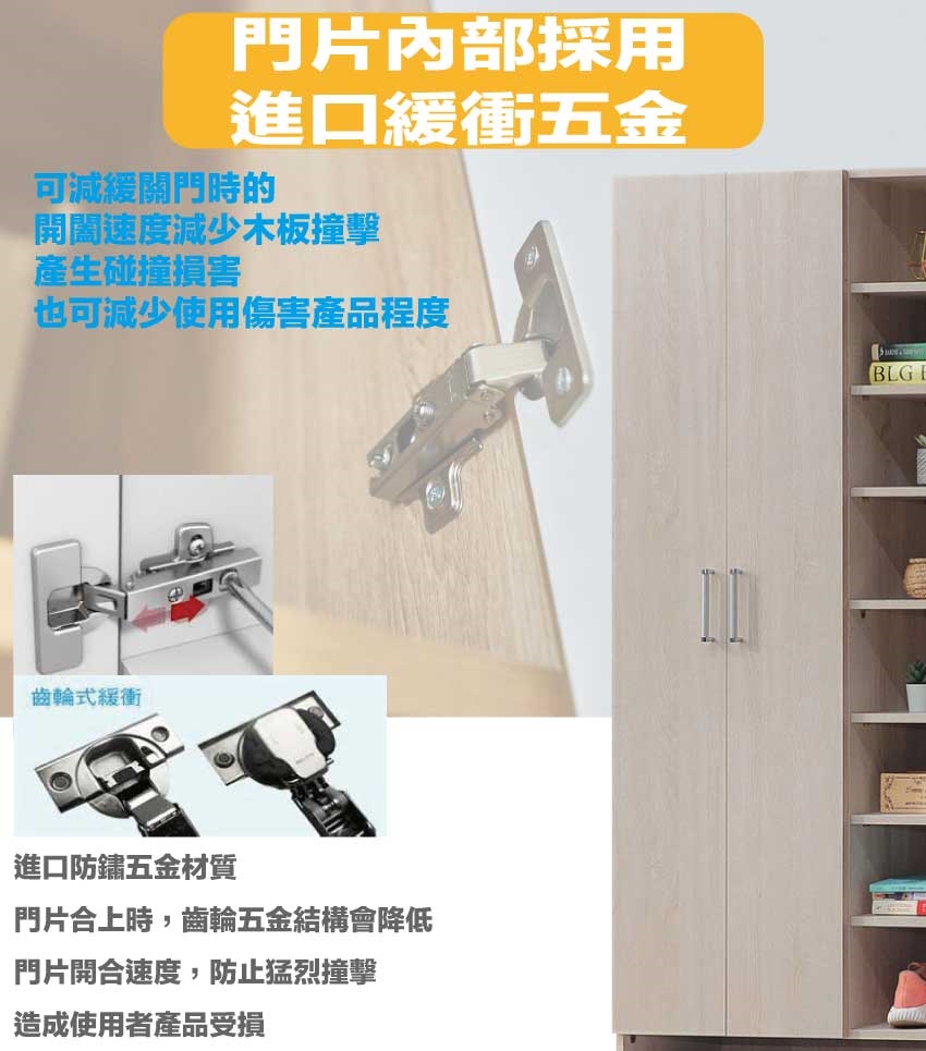 材質:防蛀木心板+實木防刮腳座+防夾手緩衝門片五金