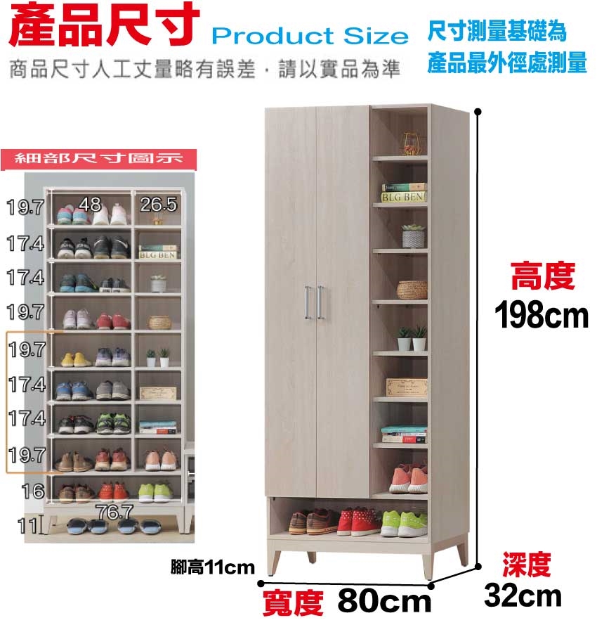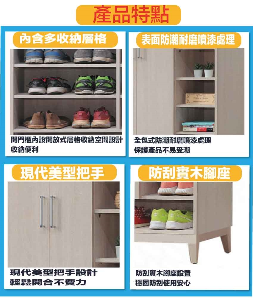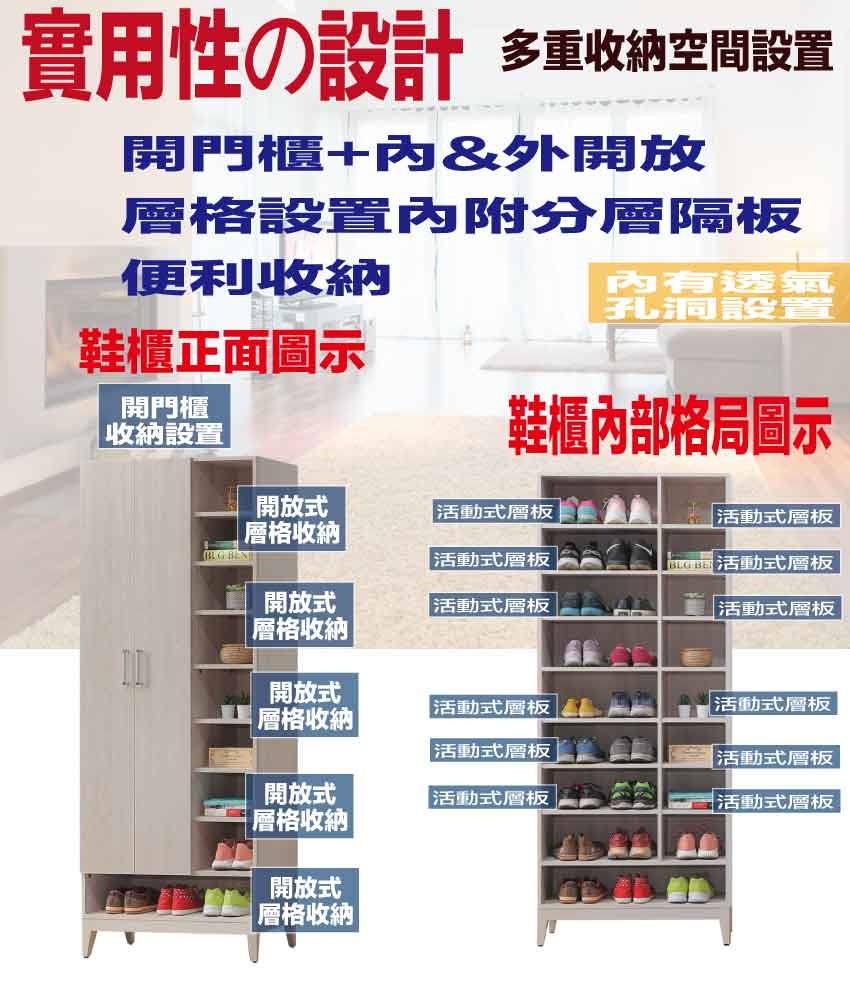 - ◆產品名稱:【綠家居】夏沐2.7尺二門半開放高鞋櫃