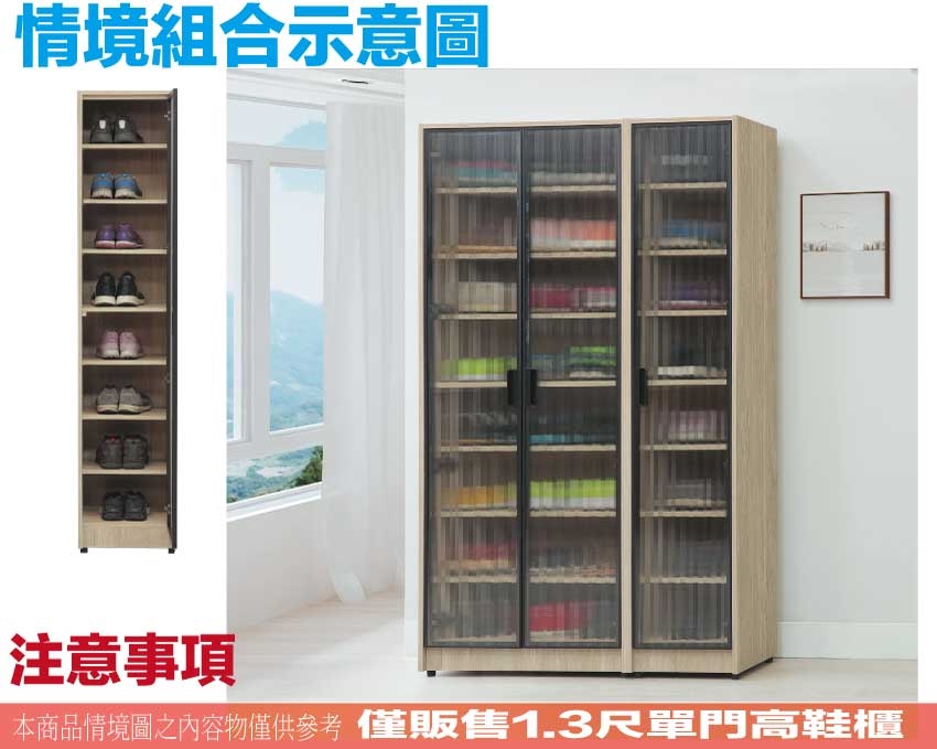 - ◆產品名稱:【綠家居】畢克爾1.3尺單門鋁框高鞋櫃