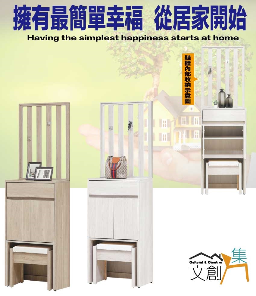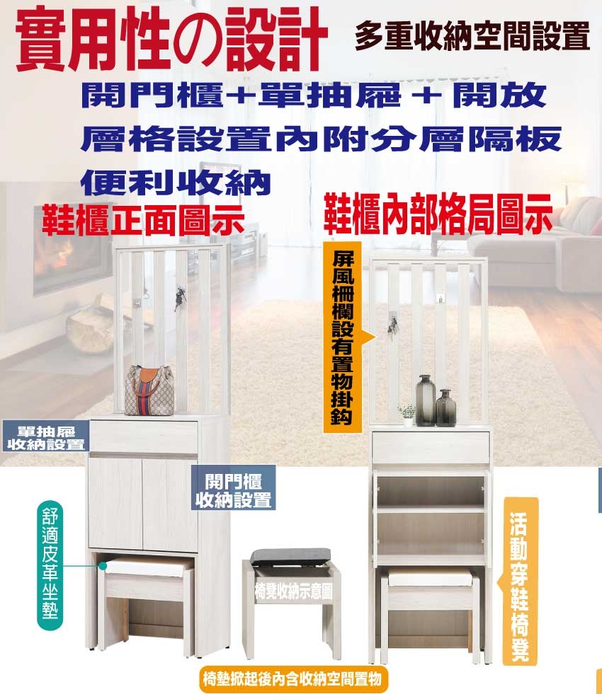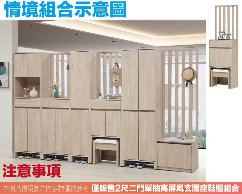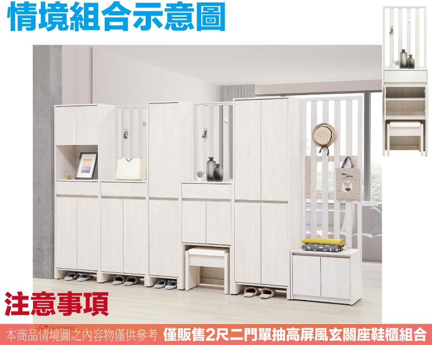- ◆產品名稱:【綠家居】哥利2尺二門單抽高屏風玄關座鞋櫃(二色可選+可移動座鞋椅凳)