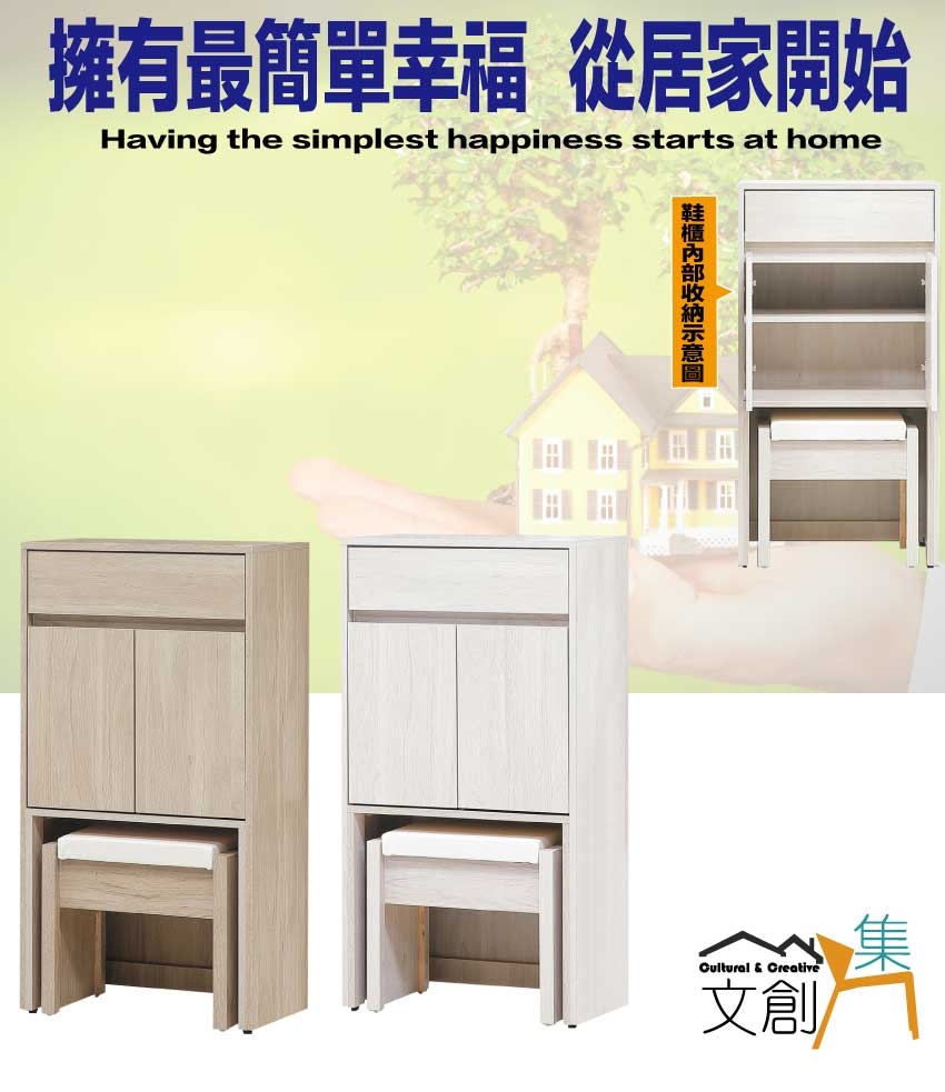 【綠家居】哥利2尺二門單抽座鞋櫃(二色可選+可移動座鞋椅凳)