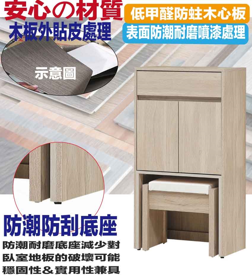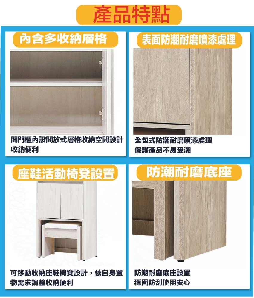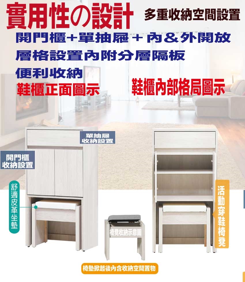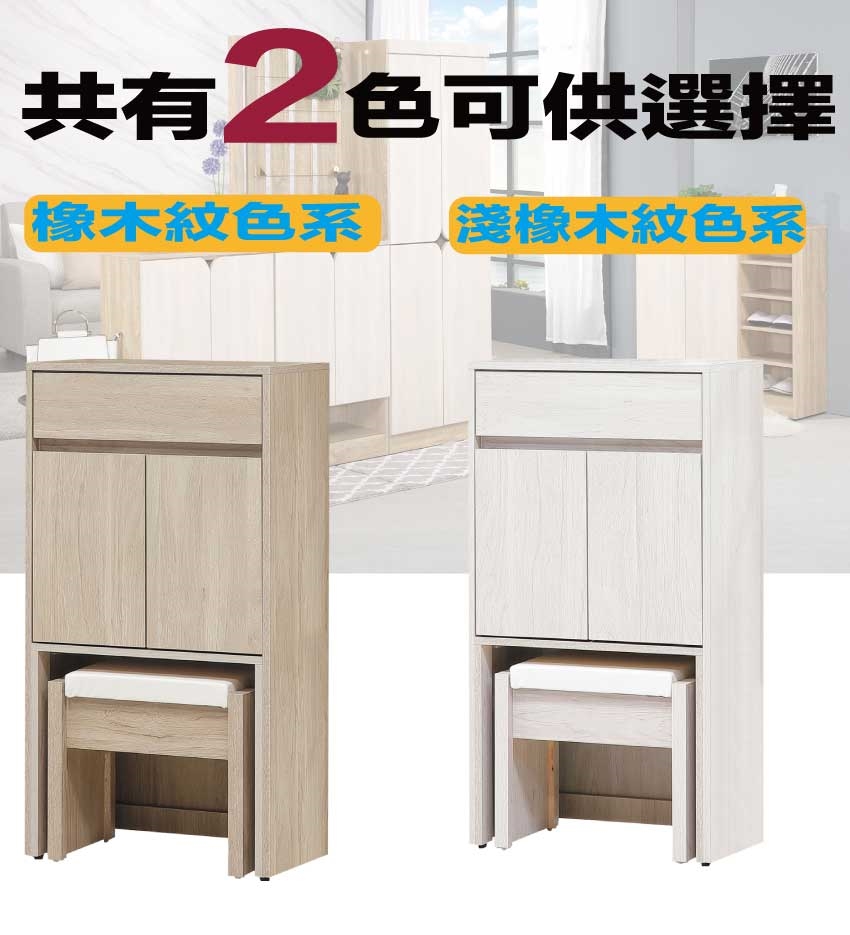 - ◆產品名稱:【綠家居】哥利2尺二門單抽座鞋櫃(二色可選+可移動座鞋椅凳)
