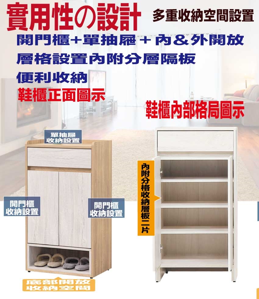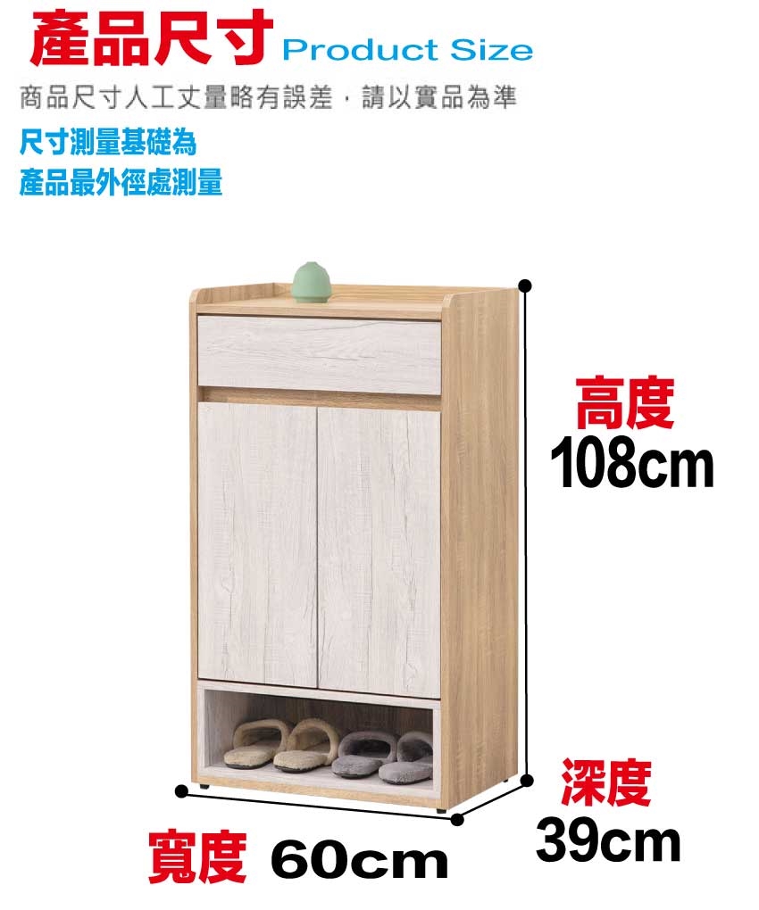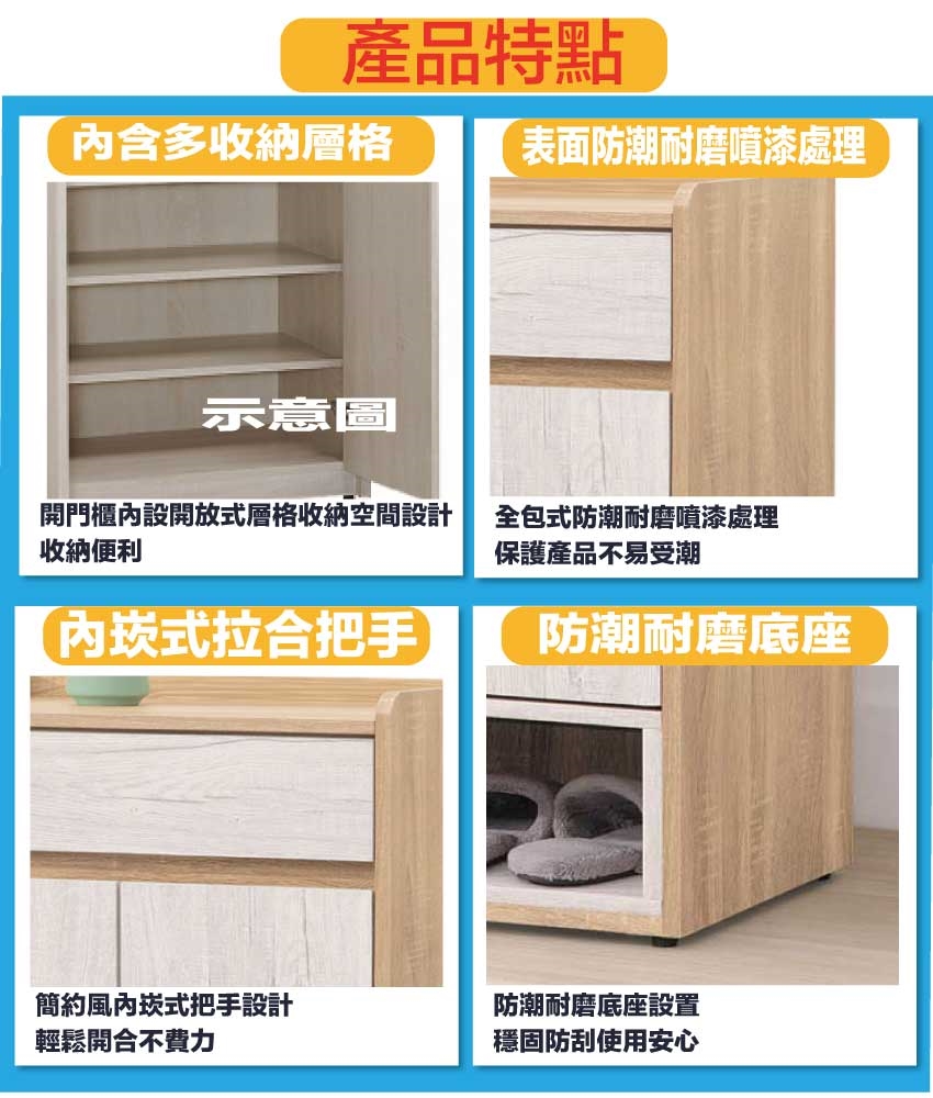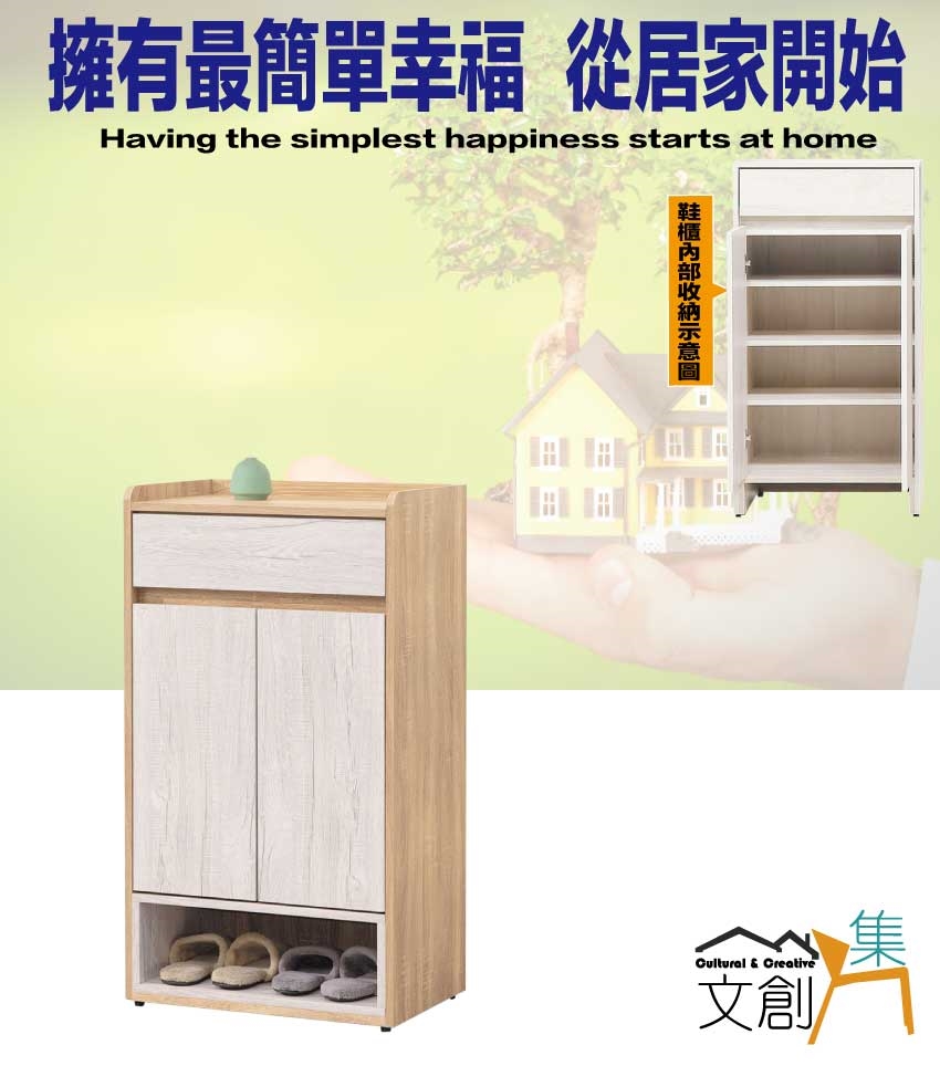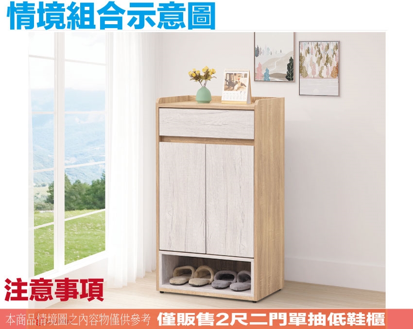 - ◆產品名稱:【綠家居】古利雙色2尺二門單抽鞋櫃
