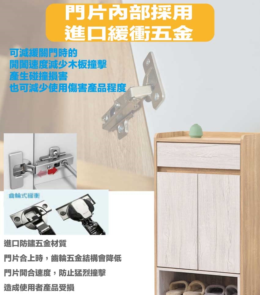 材質:防蛀木心板+五金滑軌結構+防刮耐磨腳座+防夾手緩衝門片五金