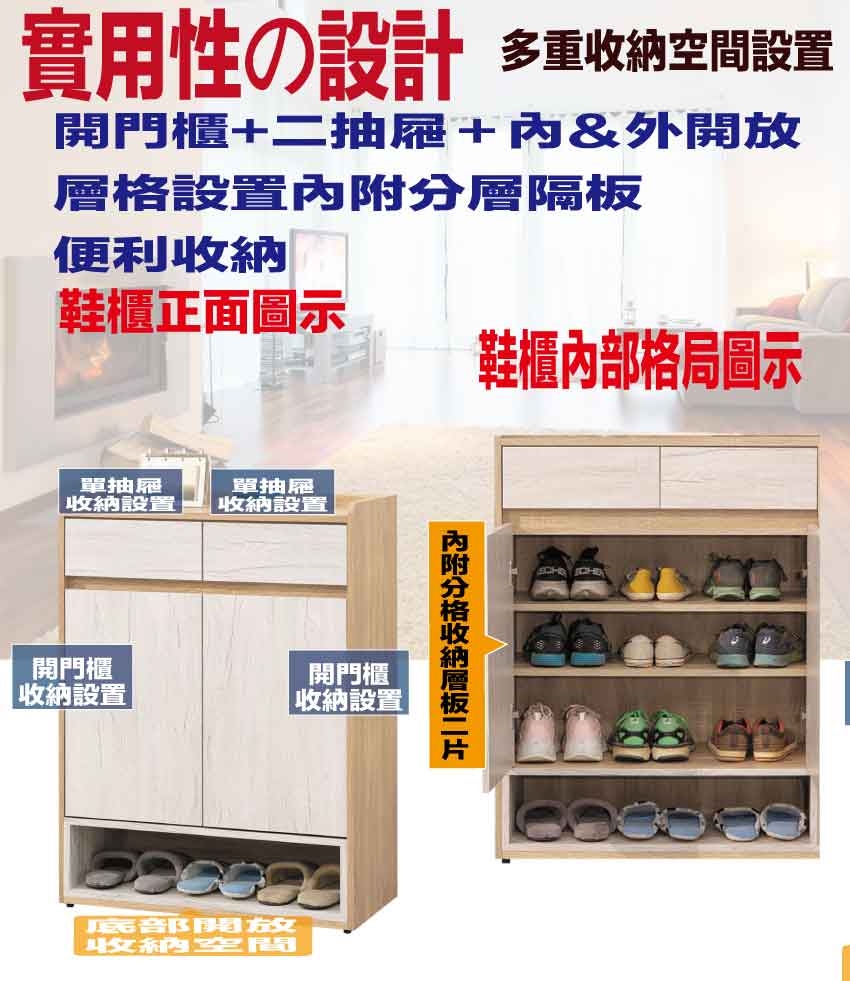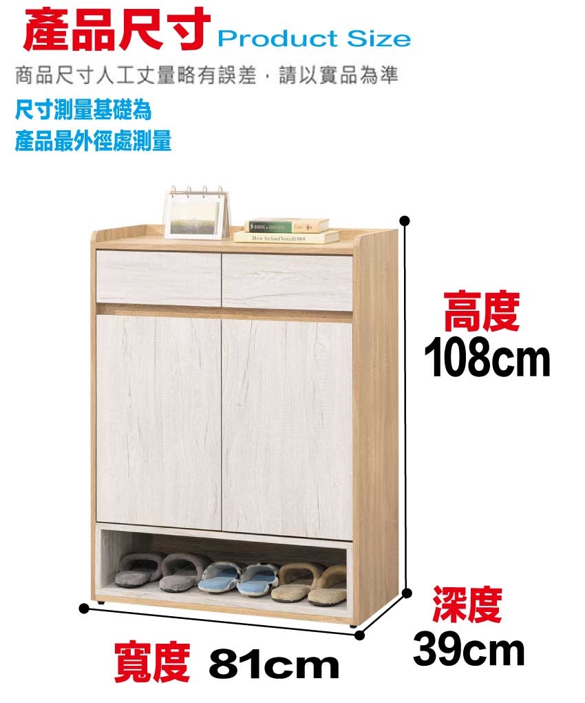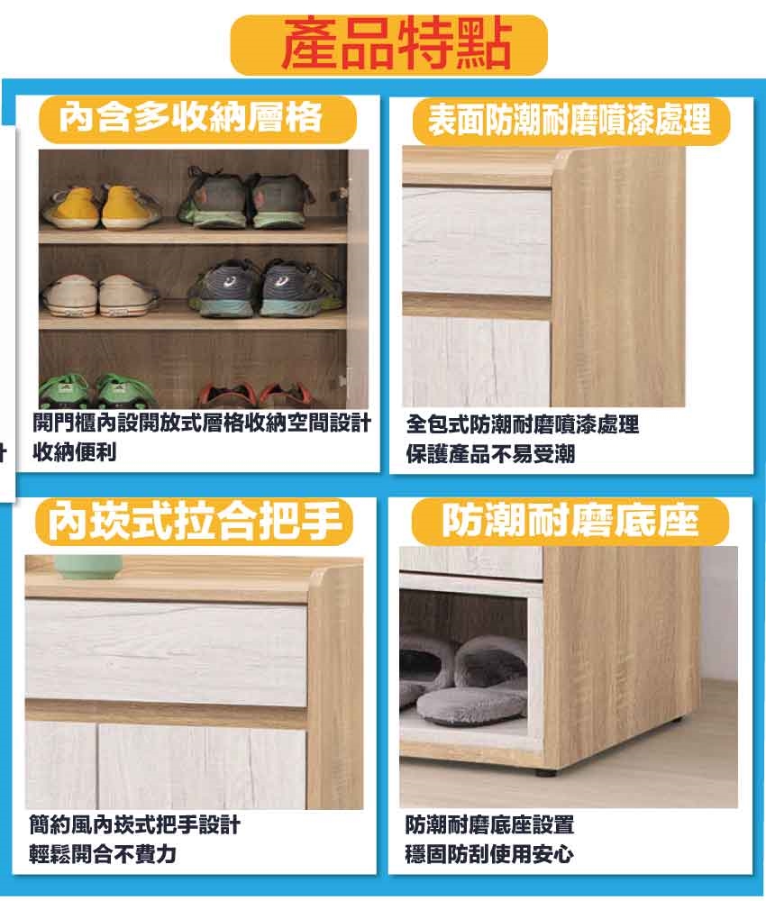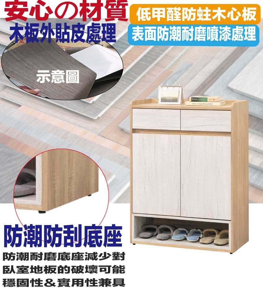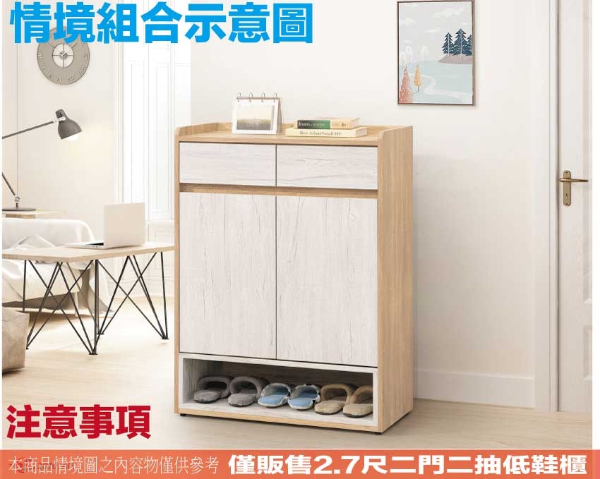 - ◆產品名稱:【綠家居】古利雙色2.7尺二門二抽鞋櫃
