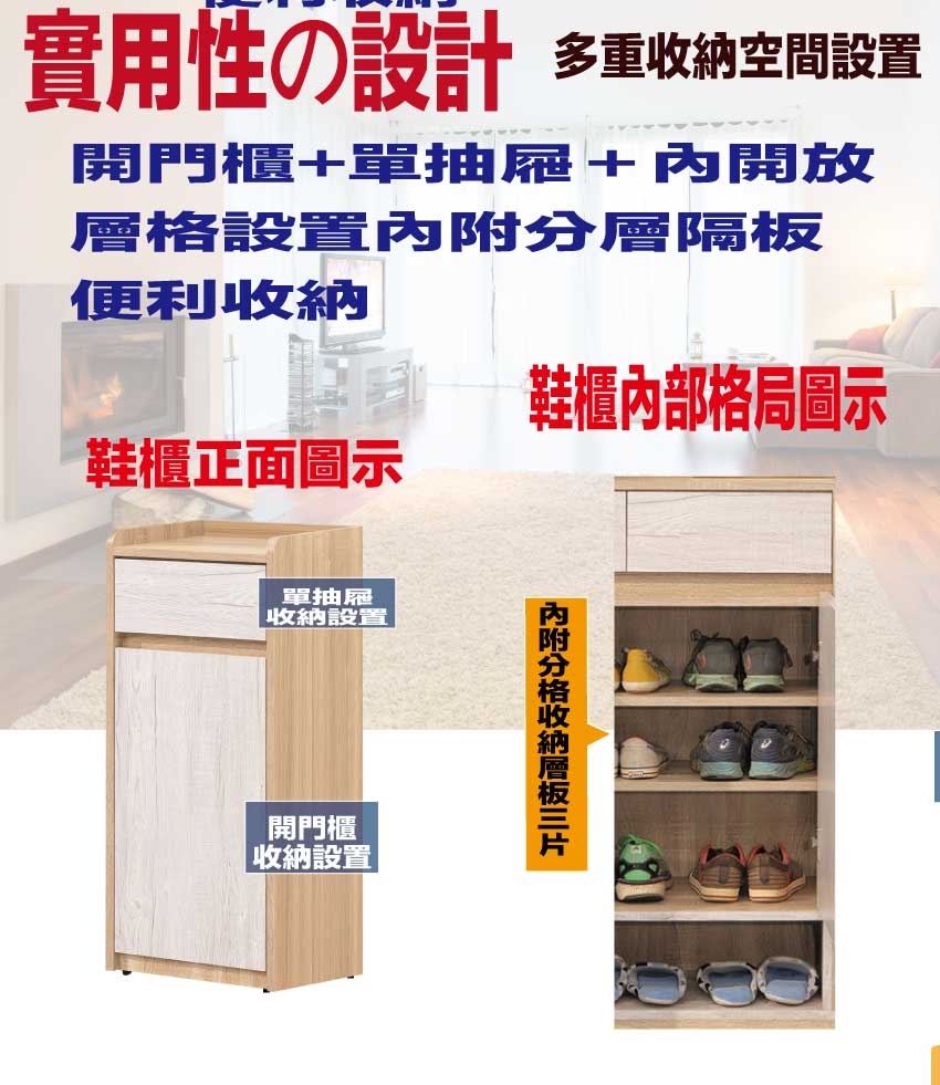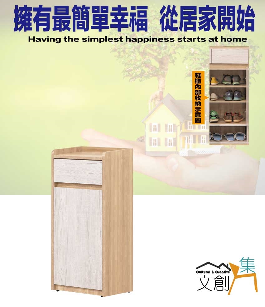 - ◆產品名稱:【綠家居】古利雙色1.3尺單門單抽中鞋櫃