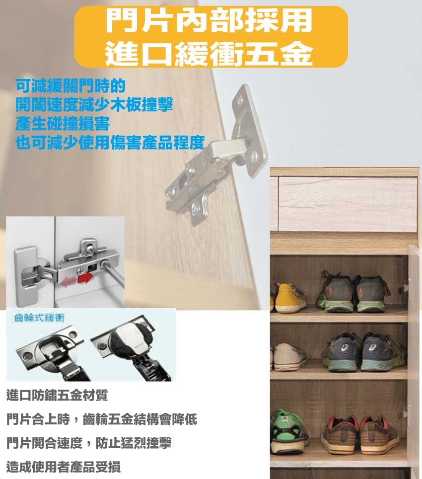 材質:防蛀木心板+五金滑軌結構+防刮耐磨腳座+防夾手緩衝門片五金