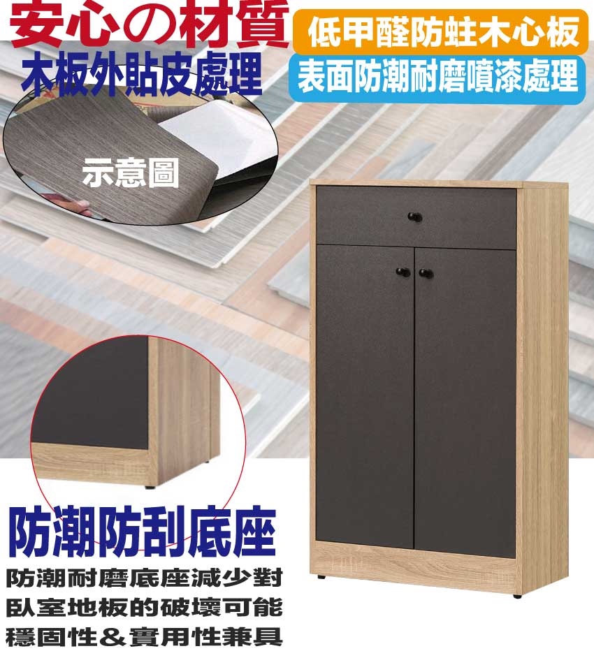 ★偏遠地區需額外加收運費,下標請先問與答詢問★ ★下訂前注意 由於商品流動較快,下訂前請先詢問是否有貨在下訂喔~★ 【綠家居】麥莉2尺二門單抽鞋櫃 木紋雙色系+安心材質製造,使用放心+搭配居家更便利,採用防蛀木心板+五金滑軌結構+防刮耐磨底座+防夾手緩衝門片五金等安心材質製造 ,外層採用防潮耐磨噴漆處理搭配採用開門櫃+單抽屜+內開放層格等收納空間設計,全由專人配送到家,專業安心服務,替你省下更多時間!